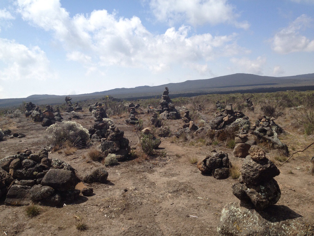 Today was a long 6 hr hike with a lot of steep ups! No matter how slow you walk, uphills will still leave you out of breath! Today we hiked out of the forest, through the heather, and we are now in the moorlands of the Shira Plateau… It was pretty cool seeing the different changes in the terrain. Right before camp we came to a huge cairn field. In the states cairns usually point you the right direction but over here they are meant to wish the travelers good luck and a safe journey! It’s pretty cool to see.
